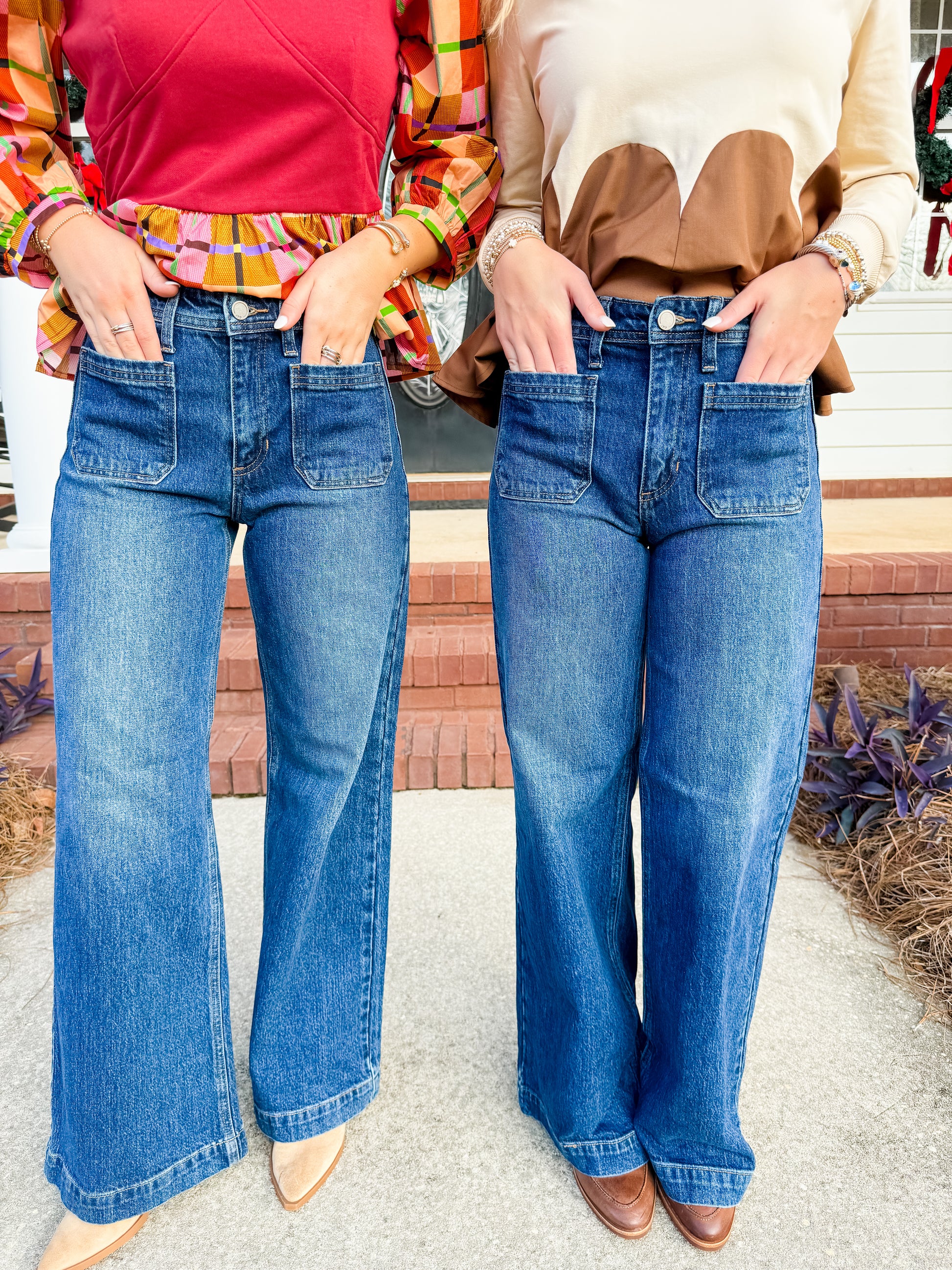 Perfect dark wash patch pocket jeans